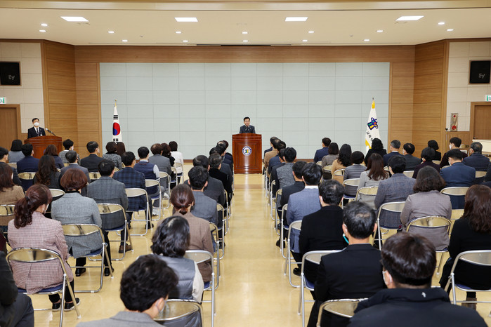 이런 과정들이 쌓이고 더해진다면 충북교육이 사회적‧교육적 환경변화에 뒤처지지 않고 새로운 교육 패러다임에 앞장설 수 있을 것이라고 강조한 뒤, 직원들의 노고를 치하하고 건강관리를 당부한 뒤 월례조회를 마쳤다.