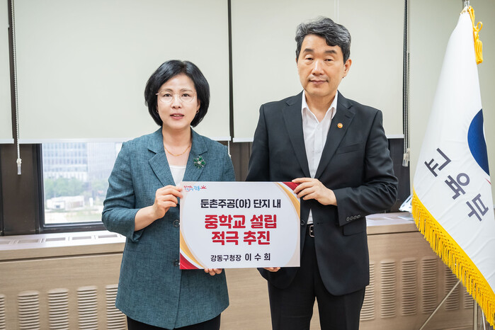 [시민일보 = 이대우 기자] 이수희 서울 강동구청장이 최근 이주호 사회부총리 겸 교육부장관을 만나 올림픽파크포레온(둔촌주공) 단지 내 중학교 설립을 적극 요청했다.
