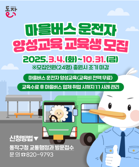 | ▲ 동작구 ‘마을버스 운전자 양성교육’ 모집 포스터. (사진=동작구청 제공) |