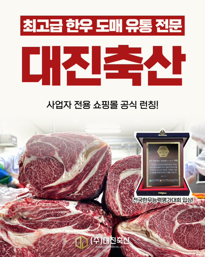 프리미엄 한우 전문 유통 기업 대진축산(대표 김정훈)은 사업자 전용 온라인 쇼핑몰을 공식 오픈했다고 16일 전했다. 이번에 공식 오픈한 대진축산 쇼핑몰은 식당, 정육점, 급식업체, 프랜차이즈 등 B2B 고객만을 대상으로 한 한우 도매 전문 유통몰로, 업계 내 신선한 도매 유통 방식을 제시한다.