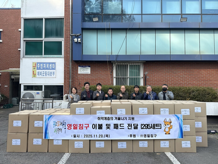 이에 김형자 연희동장은 “추운 겨울 따뜻한 나눔을 베풀어주신 영일침구와 방위협의회에 감사드리며, 전달받은 물품은 도움이 필요한 가정에 잘 전달하도록 하겠다”라고 전했다.