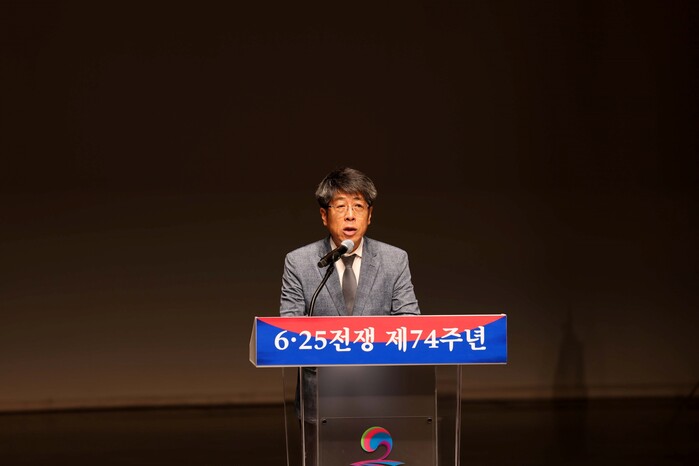 [평택=오왕석 기자] 평택시의회 유승영 의장은 25일 남부문화예술회관 대공연장에서 열린 ‘6.25전쟁 제74주년 행사’에 참석했다.