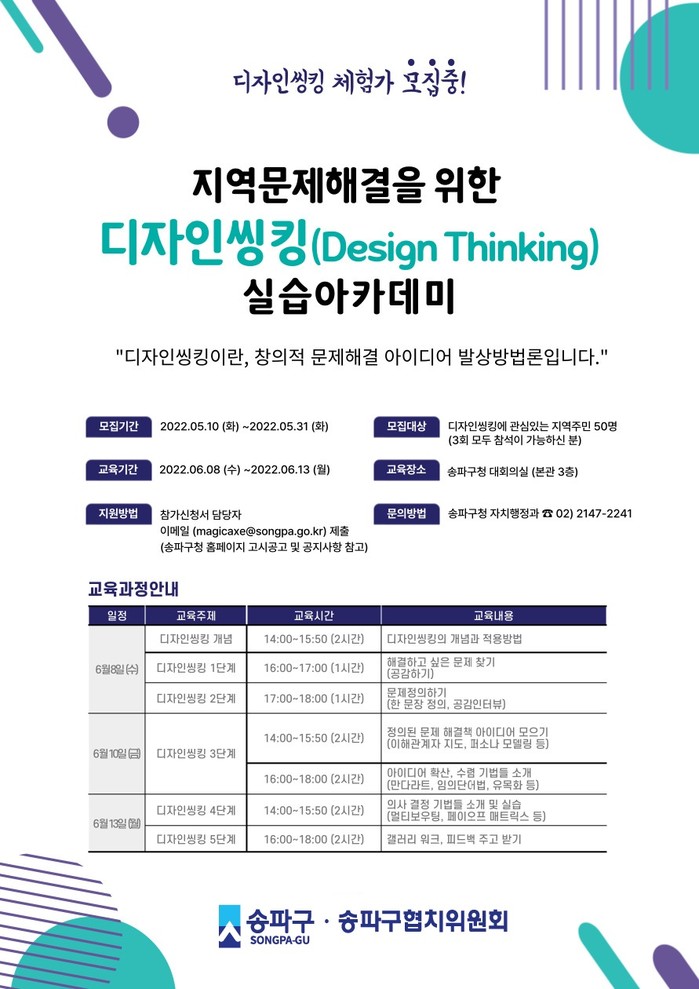| ▲ ‘2022. 디자인씽킹 실습 아카데미’ 홍보물 (사진제공=송파구청) |