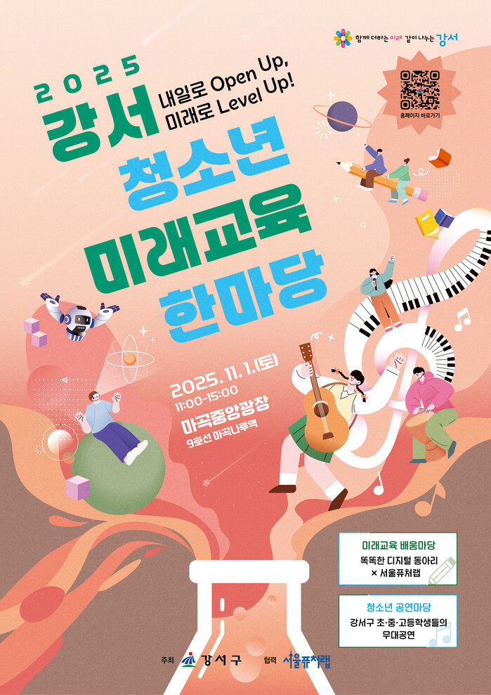[시민일보 = 박소진 기자] 서울 강서구(구청장 진교훈)는 오는 11월1일 오전 11시부터 오후 3시까지 마곡광장(마곡중앙5로 9)에서 ‘2025 강서 청소년 미래교육한마당’을 개최한다.