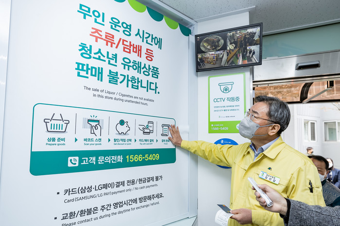 점주가 퇴근하면서 스마트폰을 이용해 담배판매대와 주류 냉장고를 무인 운영 시스템을 전환하면 도어락 잠금장치로 전환되고 심야시간대(밤 11시~익일 오전 8시까지) 스마트 무인 운영에 들어간다.