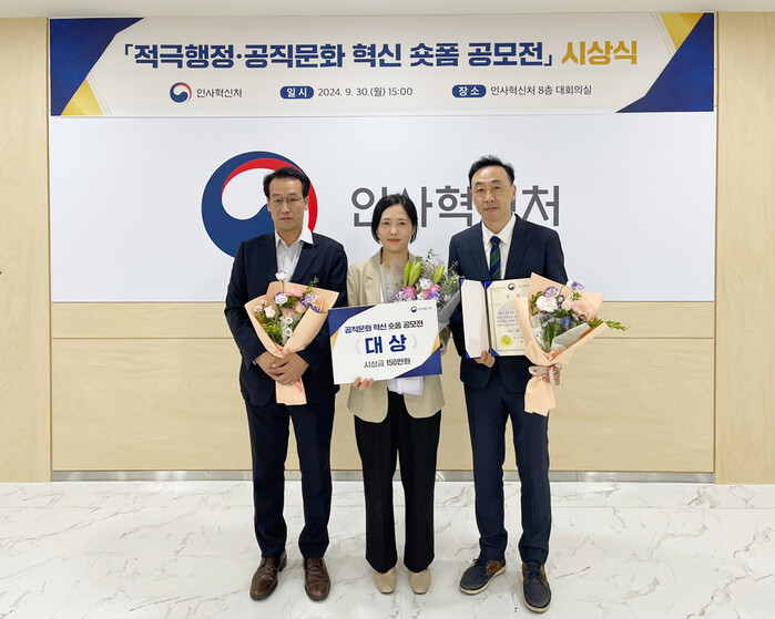 인사혁신처가 주관한 이번 공모전은 적극행정과 공직문화 혁신을 주제로 담은 30초에서 1분 미만 짧은 영상(숏폼) 형식의 우수사례 가운데 수상작을 선정했다.