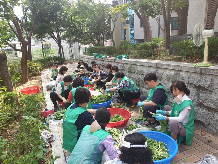 광진구는 지난 21~22일 새마을부녀회와 함께 ‘사랑의 밑반찬 만들어드리기’ 행사를 진행했다. 이번 행사는 지역내 홀몸노인 및 저소득가정 등 취약계층 206명과 동 부녀회 추천을 받은 ‘멘토 어르신’ 및 부녀회 결연시설 ‘작은 예수의 집’ 44명을 위해 준비됐다. 사진은 참여자들이 밑반찬을 만들고 있는 모습. (사진제공=광진구청)
