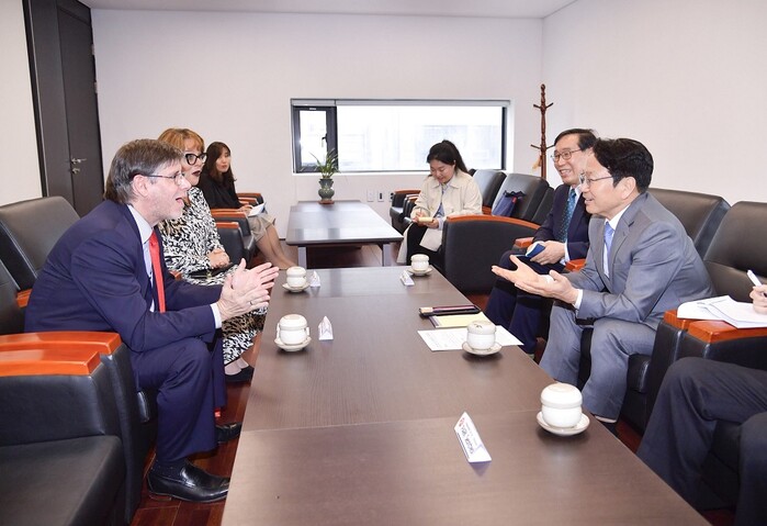 [광주=정찬남 기자] 강기정 광주광역시장은 6일 제14회 광주비엔날레 개막을 앞두고 광주를 찾은 볼프강 앙거홀처(Wolfgang Angerholzer) 주한 오스트리아대사와 폴 두클로스(Paul Duclos) 주한 페루대사를 연이어 만나, 문화예술 교류의 물꼬를 텄다.