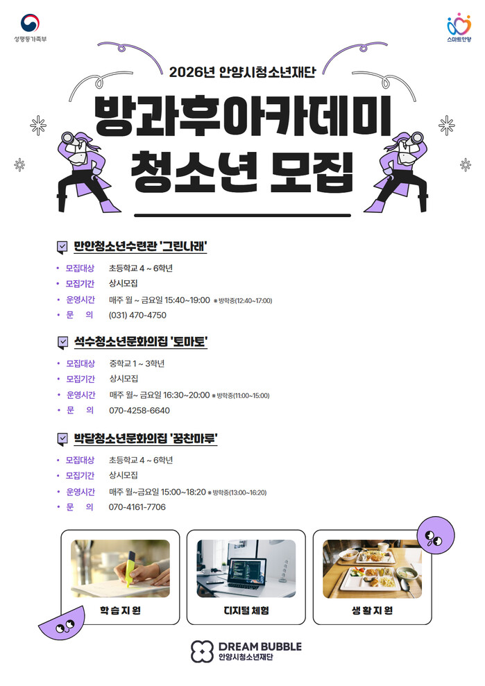 | ▲ 방과후 아카데미 청소년 모집 안내 포스터 /자료제공=안양시 |
