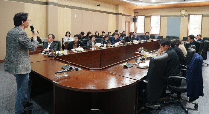[평택=오왕석 기자] 평택시의회(의장 유승영)는 21일 시의회 3층 간담회장에서 의원 및 사무국 직원 50여 명을 대상으로 평택시 재정의 현황과 문제점을 파악하고 개선방안을 모색하기 위한 역량 강화 교육을 실시했다.