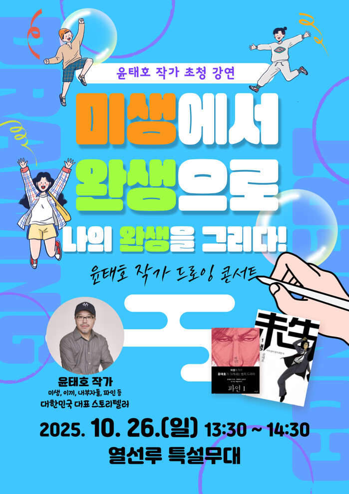 이어 ‘보성 청년 함께-잇다’, 윤태호 웹툰(미생, 파인) 작가와 함께하는 드로잉콘서트, 보성 갓 탤런트(BoSeong Got Talent) 등 청년과 청소년이 끼와 열정을 펼칠 수 있는 다채로운 무대가 이어진다.