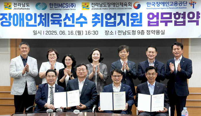 협약식에는 명창환 전남도 행정부지사, 정성진 한전MCS 대표이사, 이종성 한국장애인고용공단 이사장 등 15명이 참석했다.