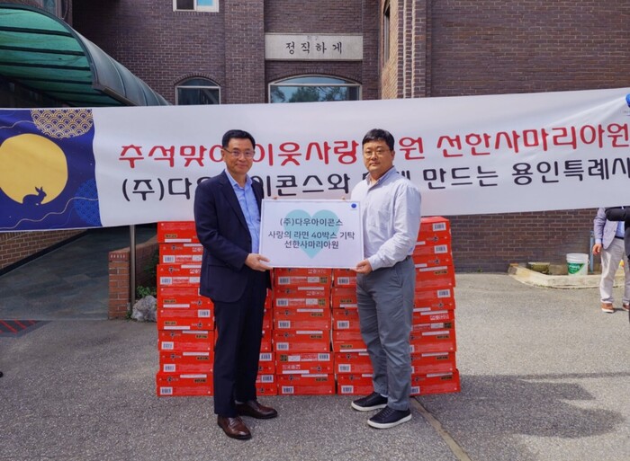 (주)다우아이콘스는 최근 용인 처인구 남사면에 위치한 선한사마리아원을 찾아 라면 40박스를 기부했다. 그간 취약계층을 위한 나눔을 지속해온 (주)다우아이콘스는 올해 추석 명절을 맞이해 뜻깊은 기부에 나섰다.