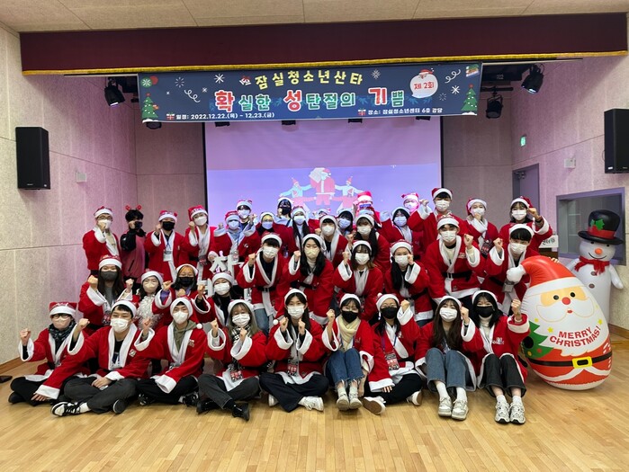 | ▲ 지난해 12월 산타학교에 입학한 잠실 청소년 산타들.(사진=송파구청 제공) |