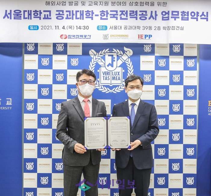 이를 이행하기 위한 노력의 일환으로 한전은 지난 4일 서울대학교공과대학과 국제에너지정책과정(IEPP) 협력을 위한 '해외사업 발굴 및 교육지원을 위한 업무협약(MOU)'을 이현빈 한전 경영지원부사장과 이병호 서울대 공과대학장이 참석한 가운데 체결했다.