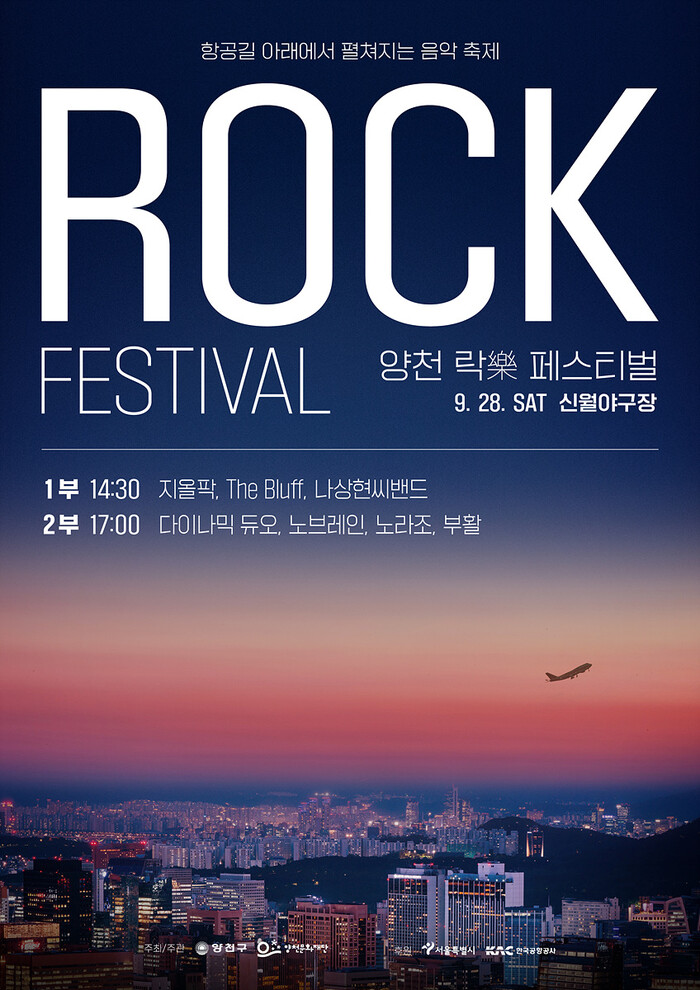 이기재 구청장은 “신월동 지역의 문화 향유 기회를 늘리고 항공기 소음으로 누적된 구민들의 스트레스를 해소하고자 마련한 락페스티벌에서 일상 속 행복과 즐거움을 누리기 바란다”며 “안전하고 질서 있는 축제 운영을 위해 준비에 만전을 기하겠다”고 말했다.