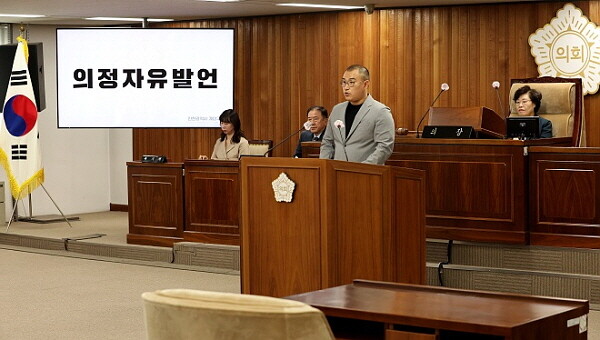 | ▲ 제255회 계양구의회 임시회 제1차 본회의에서 의정자유발언을 하고 있는 이상호 의원 (사진제공=계양구의회) |