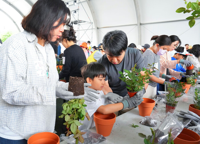 | ▲ 제17회 중랑 서울장미축제에서 반려장미를 심고 있는 중랑구민들의 모습. (사진=중랑구청 제공) |