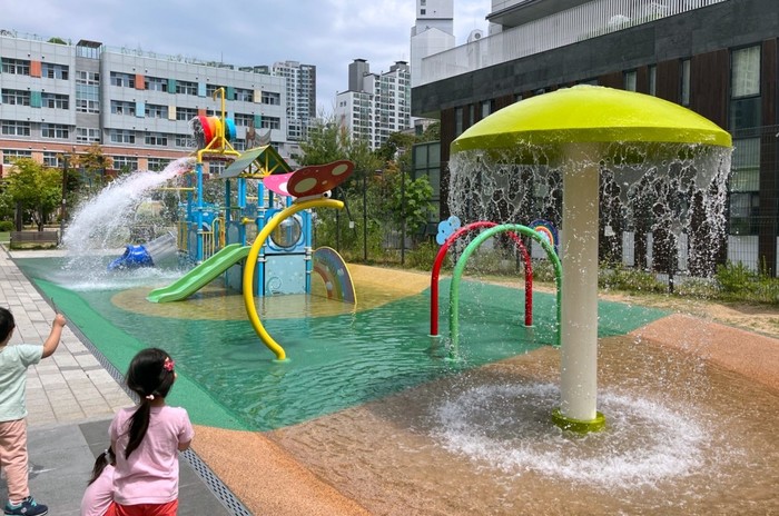 이들 물놀이장은 미끄럼틀 같은 놀이시설과 함께 이용할 수 있는 것이 특징이며, 작은 물 폭포도 가동돼 어린이들에게 즐거움을 더할 예정이다.
