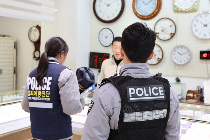 이번 활동은 경찰서·지역경찰·CPO 등 5명이 참석하여 금은방 및 무인점포를 방문, CCTV·비상벨 등 방범시설물 이상 유무를 점검하고, 업주를 대상으로 강·절도 사례 공유와 함께 노쇼-보이스피싱 등 각종 범죄예방 홍보활동도 병행하였다.
