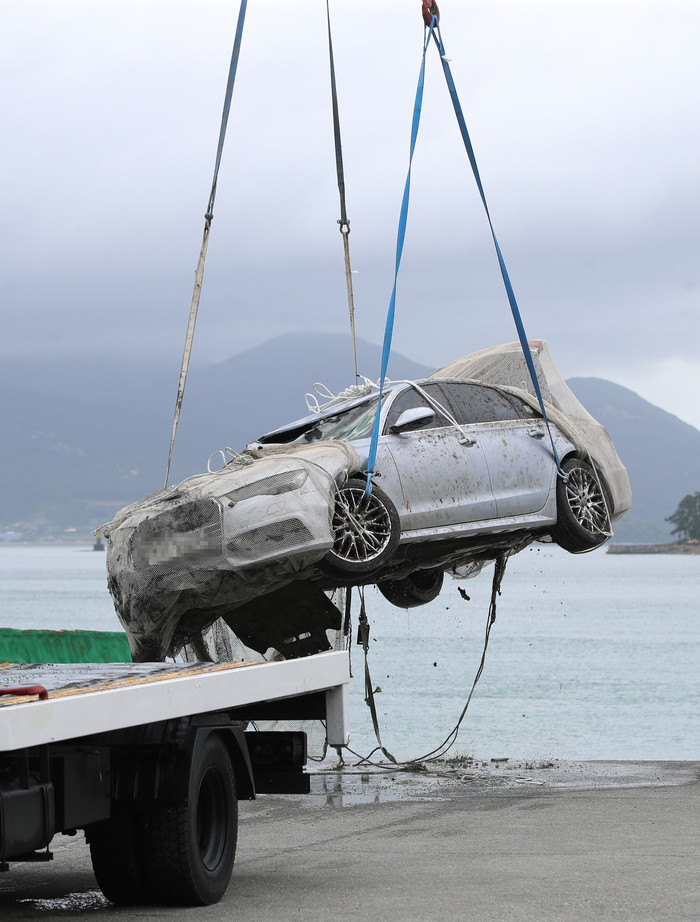 [광주=정찬남 기자] 전남 완도군 신지도 송곡항 인근 해상에서 인양한 아우디 승용차 내부에서 실종된 조유나(10)양 일가족 3명으로 추정되는 탑승자들이 확인됐다.