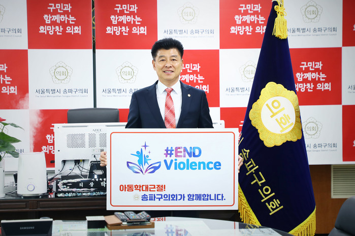 [시민일보 = 이대우 기자] 서울 송파구의회 박경래 의장이 아동 학대 근절을 위한 「END Violence」 캠페인에 참여했다.