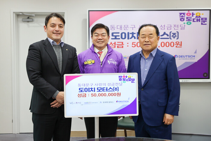 [시민일보 = 이대우 기자] 서울 동대문구(구청장 이필형)는 도이치모터스로부터 사랑의 성금 5000만원을 전달받았다고 29일 밝혔다.
