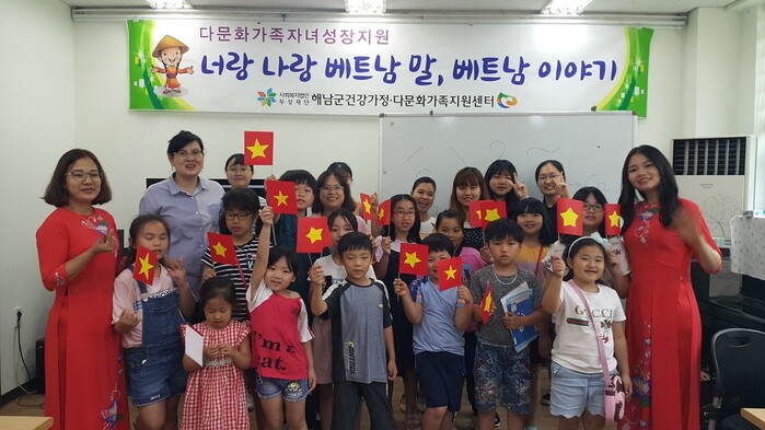 | ▲ 해남문화관광재단, 다문화가족자녀 성장지원 '너랑 나랑 베트남 말, 메트남 이랴기'프로그램 운영 기념촬영 / 해남군 제공 |