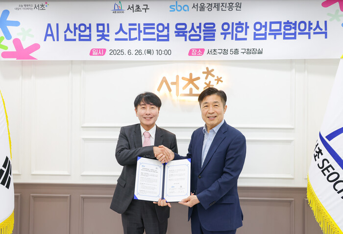 [시민일보 = 박소진 기자] 서초구(구청장 전성수)가 AI 스타트업의 든든한 버팀목이 될 1100억원 규모 ‘서초 AI 스타트업 펀드’ 운용을 위해 26일 서울경제진흥원과 업무협약을 체결했다고 27일 밝혔다.