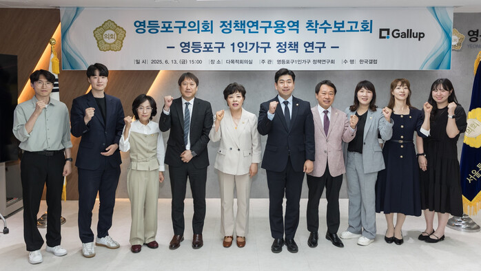 [시민일보 = 여영준 기자] 서울 영등포구의회 의원 연구단체 '영등포구 1인 가구 정책연구회(이하 연구회)'가 최근 구의회 다목적 회의실에서 연구회 발대식 및 연구용역 착수보고회를 개최하고 본격적인 연구 활동에 돌입했다.