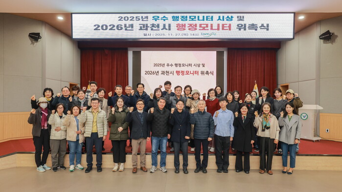 [과천=임종인 기자] 경기 과천시가 최근 시청 대강당에서 ‘2026년 행정모니터 위촉식’ 및 ‘2025년 행정모니터 활동 우수자 시상식’을 개최했다고 28일 밝혔다.