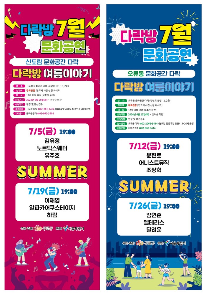 문헌일 구청장은 “구민 누구나 음악을 누릴 수 있도록, 7월 다락에서 문화공연을 준비했다”라며 “앞으로도 다양한 공연을 즐길 수 있도록 구로구에서 최선을 다하겠다”라고 전했다.