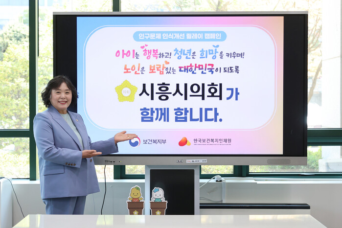 | ▲ 시흥시의회 오인열 의장이 4월 28일 보건복지부와 한국보건복지인재원이 공동 추진하는 인구문제 인식개선 릴레이 캠페인에 동참했다 /사진제공=시흥시의회 |