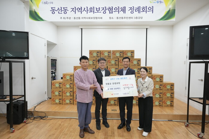[시민일보 = 변은선 기자] 가정의 달을 맞아 서울 성북구(구청장 이승로) 소재 원불교 돈암교당이 동선동주민센터에 저소득층 이웃을 위해 라면 100박스를 전달했다.
