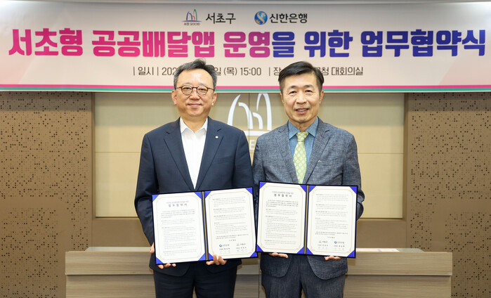 [시민일보 = 이대우 기자] 서울 서초구(구청장 전성수)가 6일 신한은행과 서초형 공공배달앱인 ‘서초 땡겨요’ 운영을 위한 전략적 업무협약을 서초구청 5층 대회의실에서 체결했다.