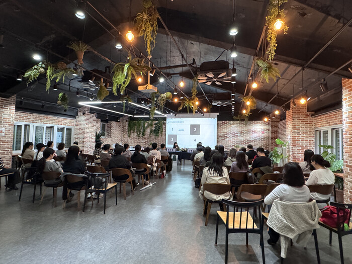 | ▲ 2024년 ‘상주작가 지원사업’ 운영기관 가온도서관을 찾은 이용자를 대상으로 문학산책 : 작가와의 대화를 진행하고 있다. (사진=중구청 제공) |