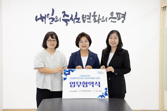 [시민일보 = 이대우 기자] 서울 은평구(구청장 김미경)는 최근 한국관광통역안내사협회, 은평구가족센터와 함께 ‘은평구 다문화가족 관광통역안내사 양성 지원’을 위한 업무협약을 체결했다고 밝혔다.