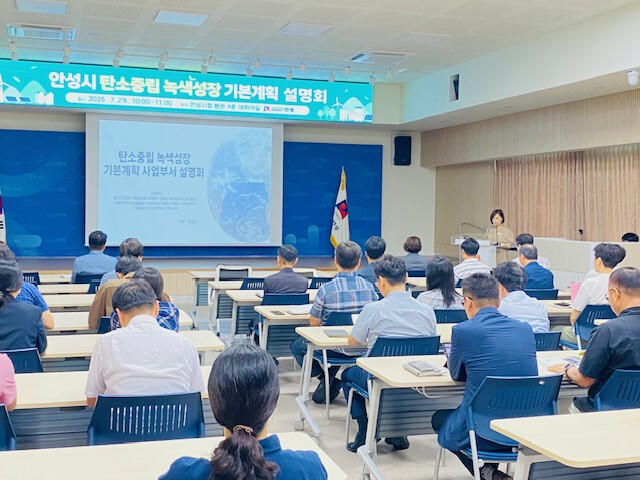 [안성=오왕석 기자] 안성시는 「안성시 탄소중립·녹색성장 기본계획」의 온실가스 감축 목표 달성을 위하여 온실가스 저감 사업을 추진 중인 부서들을 대상으로 탄소중립 기본계획 이행 역량을 강화하고, 실행 기반을 다지기 위하여 2025.7.29.(화) 오전 10시 안성시청에서 안성시 탄소중립 녹색성장 기본계획 설명회를 개최하였다고 밝혔다.