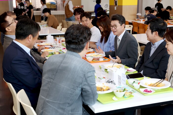 | ▲ ‘천 원의 아침밥’ 체험을 위해 정원오 구청장이 한양대학교에 방문했다. (사진=성동구청 제공) |