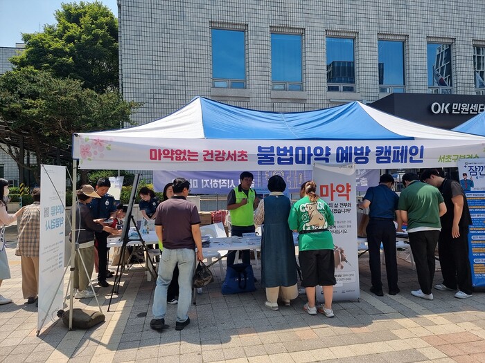 먼저 ‘불법마약 예방 전시회’는 이틀 간 서초구청 1층 로비에서 열렸으며, 마약류 예방 포스터 수상작과 마약류 중독폐해 및 오남용에 대한 자료를 전시했다. 이를 통해 불법 마약류 사용에 대한 경각심을 높이고, 마약범죄의 실태와 심각성을 알렸다.