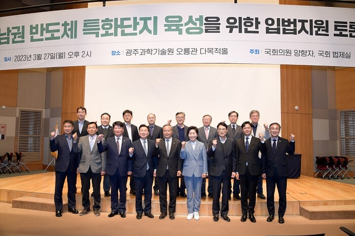 [광주=정찬남 기자] 광주광역시(시장 강기정)는 27일 광주과학기술원 오룡관 다목적홀에서 국회 법제실과 양향자 국회의원(무소속·광주 서구을)실 공동으로 ‘호남권 반도체 특화단지 육성을 위한 입법지원 토론회’가 열렸다고 밝혔다.