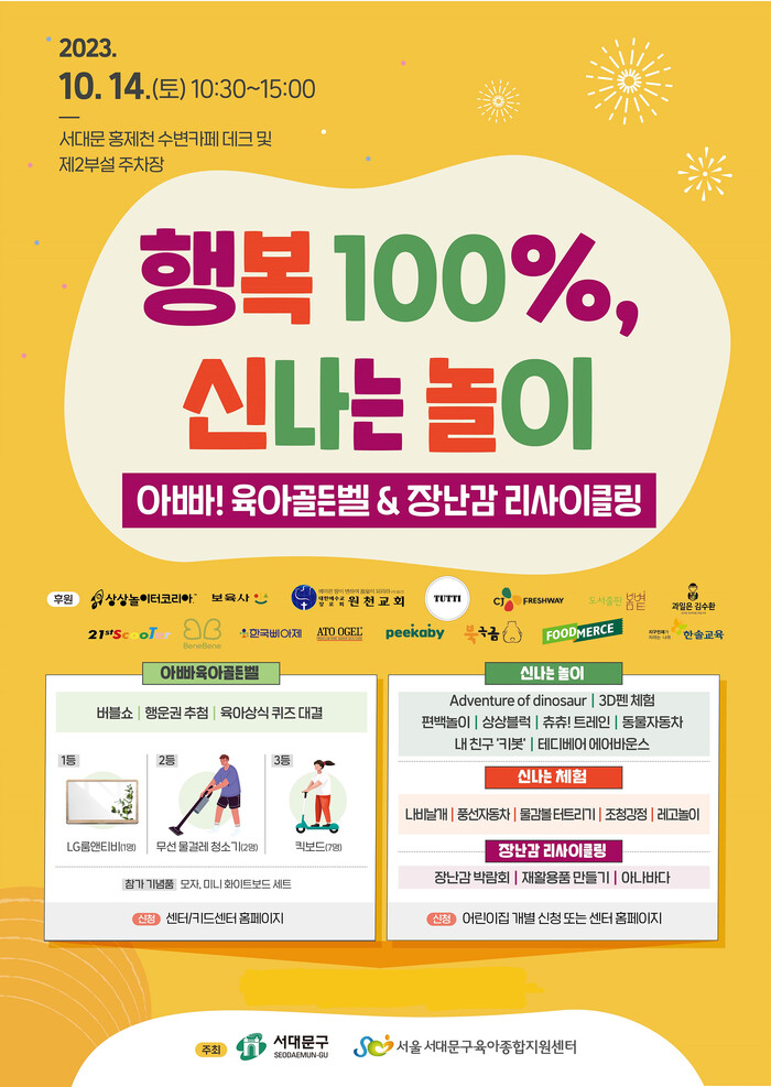 이번 행사는 영유아 양육 가정의 소통과 장난감 재활용 확산을 위해 서대문구육아종합지원센터가 주최한다.