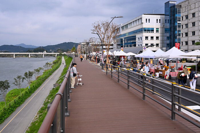 기존 산책로에 폭 5m 규모의 데크길을 새로 놓고, 벤치와 가로수, 야간경관 조명을 추가해 낮에는 남한강 조망을 즐기고 밤에는 빛의 거리로 변하는 매력적인 공간으로 꾸몄다. 천혜의 남한강 물길과 도시재생의 결실이 어우러진 이번 사업을 통해 양평의 중심 강변이 다시 활기를 찾게 됐다.