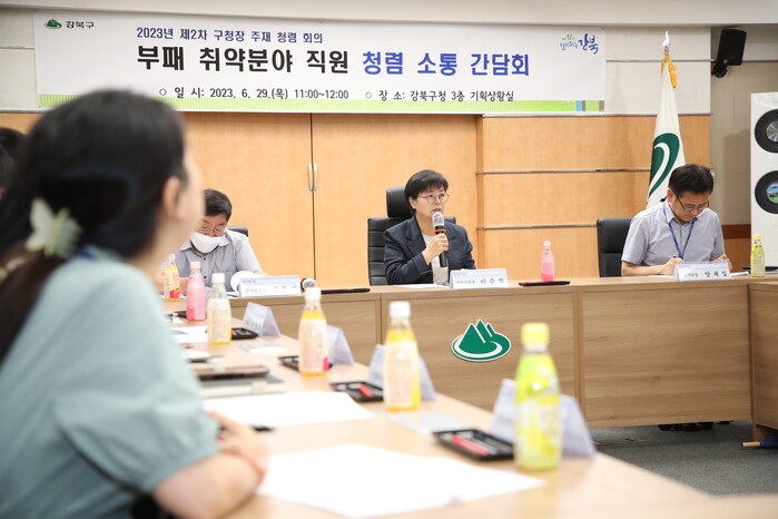 [시민일보 = 홍덕표 기자] 강북구(구청장 이순희)는 최근 부패 취약분야 실무 담당 직원과 '청렴소통 간담회'를 열었다고 4일 밝혔다.