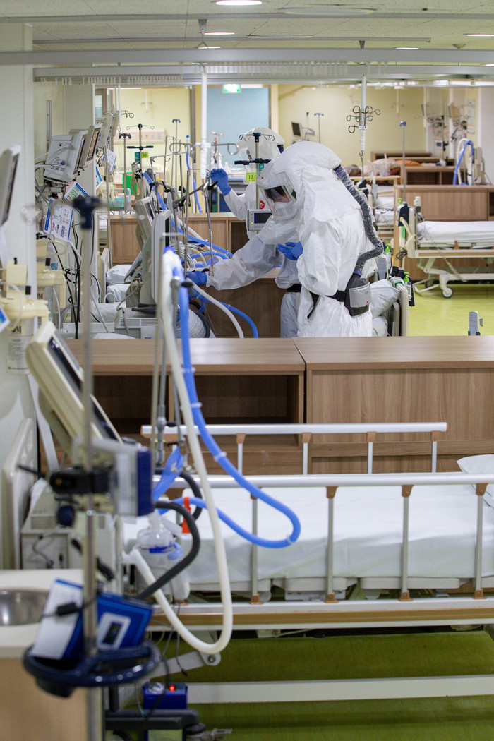 27일 오전 서울시 최초로 코로나19 거점전담병원으로 지정된 혜민병원 중환자실에서 의료진이 업무를 보고 있다. (사진제공 = 연합뉴스)