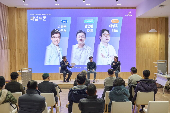 2024년 첫 뉴콘 톡데이(1월 19일 개최)에서 올해 뉴콘텐츠 산업 동향과 트렌드를 살펴보는 시간을 가졌다면 지난 지난 16일 개최된 이번 행사는 뉴콘텐츠 기술 사업화에 성공한 두 기업의 대표가 연사로 나서 생성형 AI에 관한 다양한 사례와 경험, 인사이트를 공유했다.