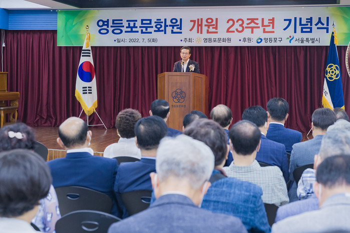 최호권 영등포구청장이 지난 5일 영등포문화원에서 열린 '영등포문화원 개원 23주년 기념식'에 참석했다. 사진은 이날 기념식에 참석한 최 구청장이 인사말을 하고 있는 모습. (사진제공=영등포구청)