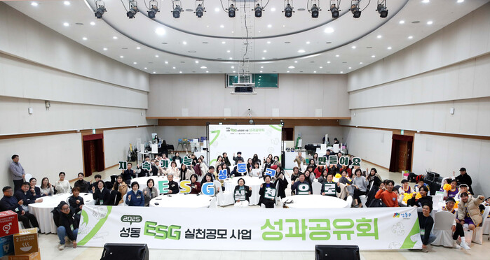 [시민일보 = 박소진 기자] 성동구(구청장 정원오)가 최근 구청 3층 대강당에서 '2025 성동형 ESG 실천 공모사업 성과공유회'를 개최하고 한 해 동안 추진해 온 ESG 실천 공모사업을 성공적으로 마무리했다고 밝혔다.