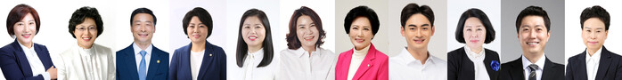 | ▲ 사진 왼쪽부터 현옥순 의원, 박은경 의원, 한명훈 의원, 김진숙 의원, 박은정 의원,김유숙 의원,이진분 의원,선현우 의원,황은화 의원,최찬규 의원,이지화 의원 /사진제공=안산시의회 |