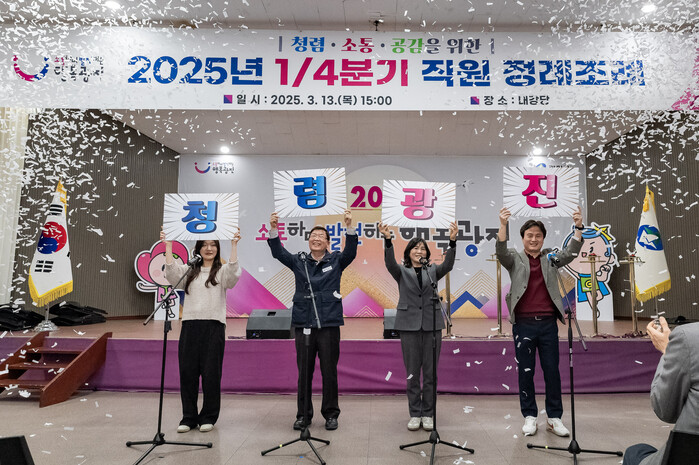 ‘청렴·소통·공감’을 주제로 열린 정례조례는 직원 300여 명이 참석한 가운데 진행됐다.